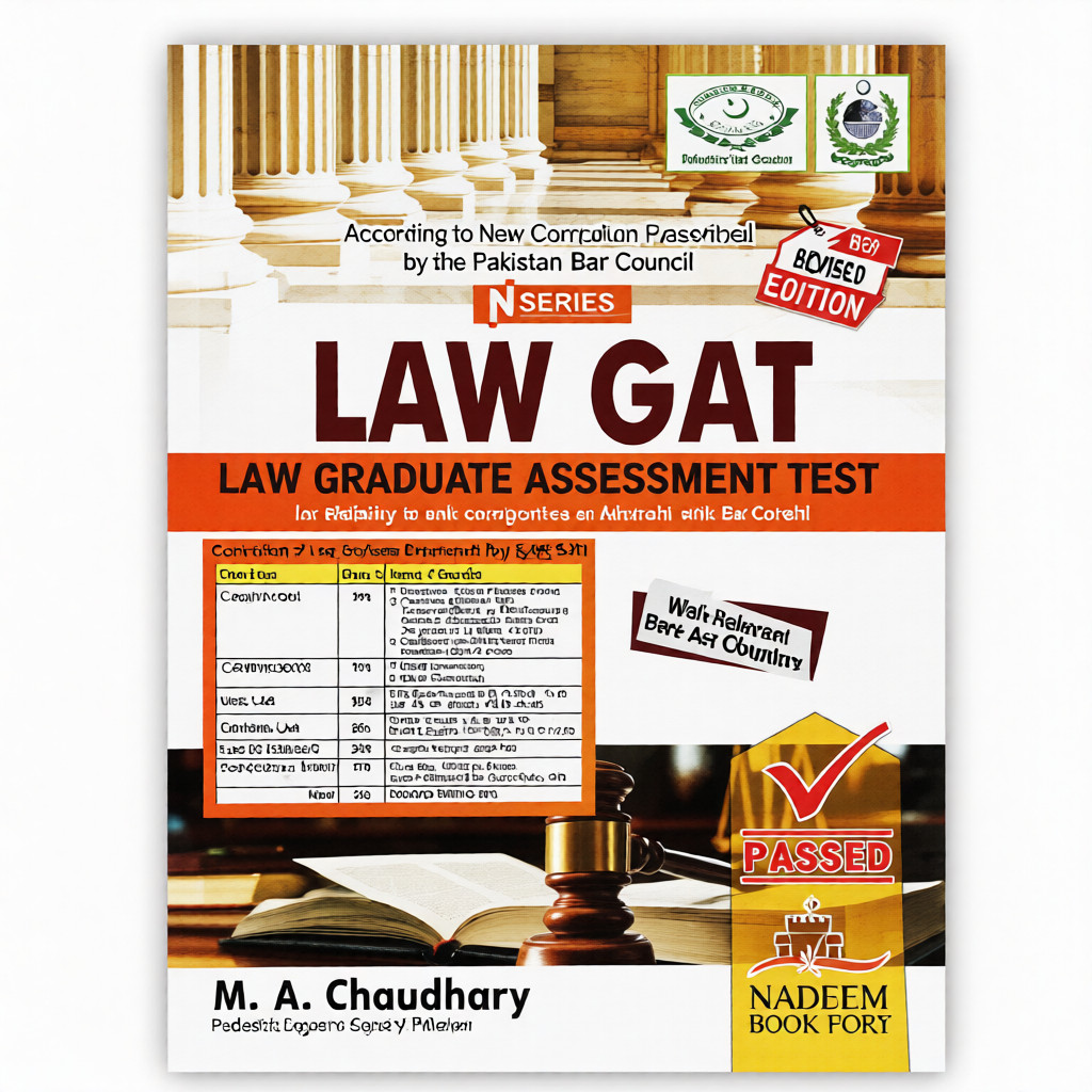 Get exam-ready for the Law Graduate Assessment Test (LAW GAT) with the LAW GAT Guide by M.A. Chaudhary – Nadeem Book Fort, prescribed by the Pakistan Bar Council. This N Series New Revised Edition follows the latest curriculum designed by the Council and includes all relevant Bare Act chapters for comprehensive preparation.