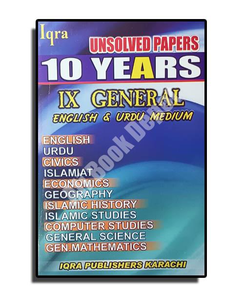 This is Ten Year Unsolved paper of IX general, published by Iqra Publisher.
